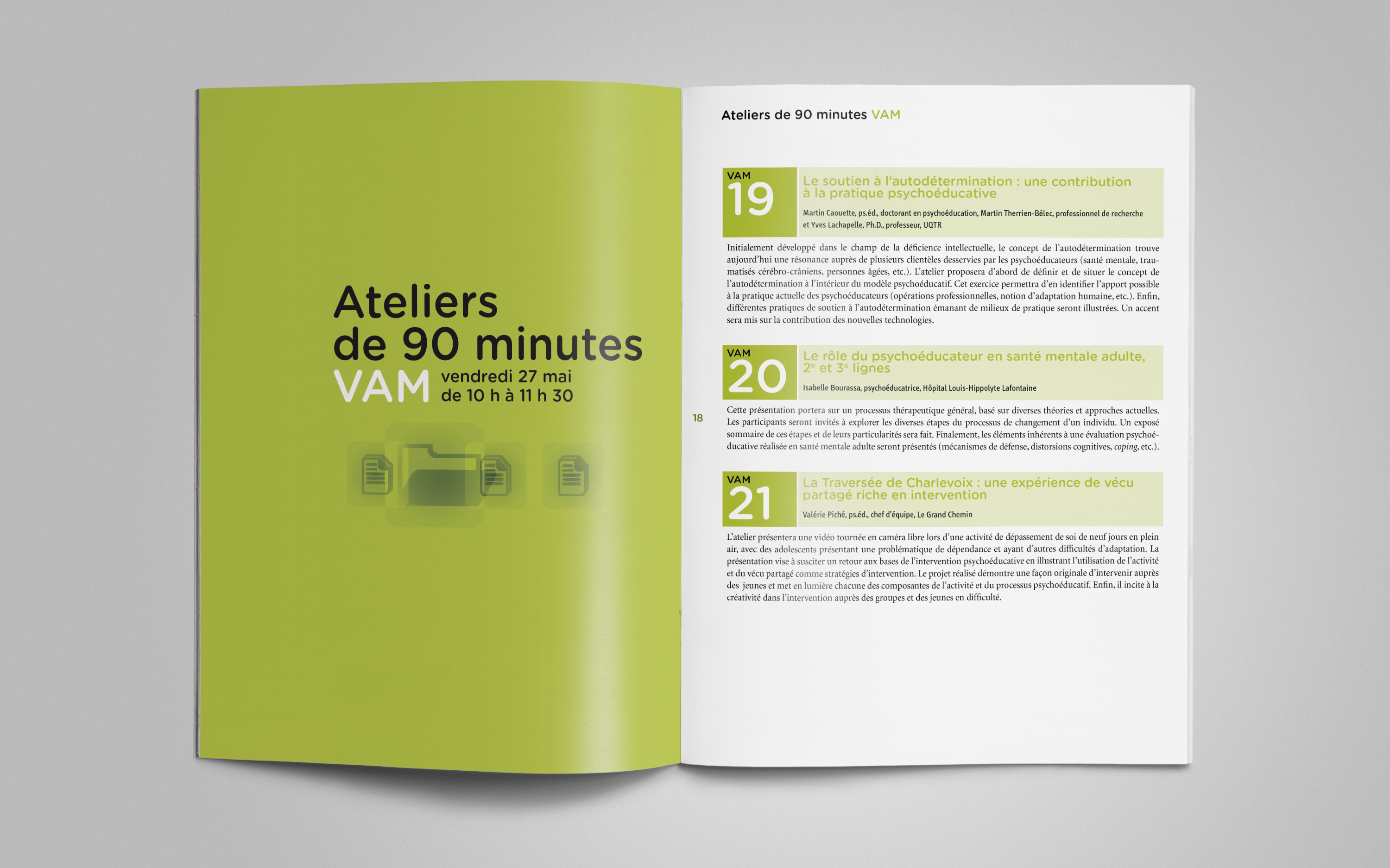 Conception et réalisation du guide pour le colloque annuel de l’Ordre des psychoéducateurs et psychoéducatrices du Québec.